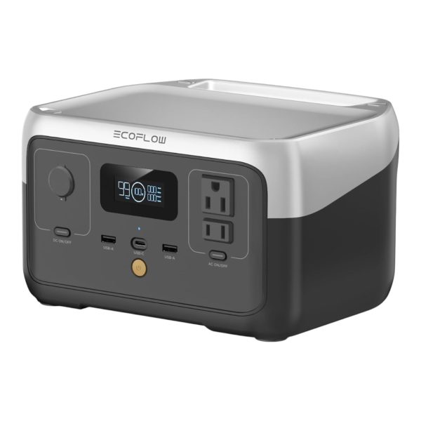 EF ECOFLOW RIVER 2 Portable Power Station, 256Wh LiFePO4 battery, 1-hour fast charge, 600W AC outlets, solar-ready—ideal for camping, RVs, and home use.