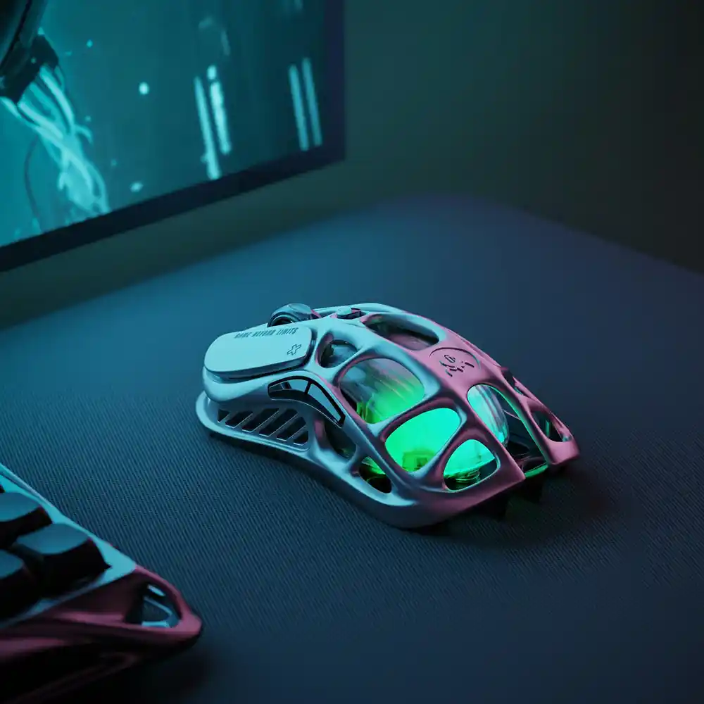 Built with a lightweight honeycomb frame, this mouse ensures maximum agility during intense gaming sessions while maintaining durability and ergonomic comfort. The rechargeable battery offers long-lasting power, and the PTFE feet guarantee smooth gliding on any surface.