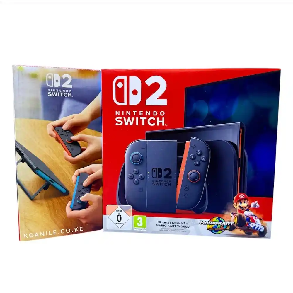 Purchase the Nintendo Switch 2 – Mario Kart World Deluxe Bundle (OLED, 2025 Edition) at My Gadget Plug 254, Tom Mboya Street, Platinum Plaza, Opposite Imenti House, 2nd Floor, Shop S17, Nairobi.