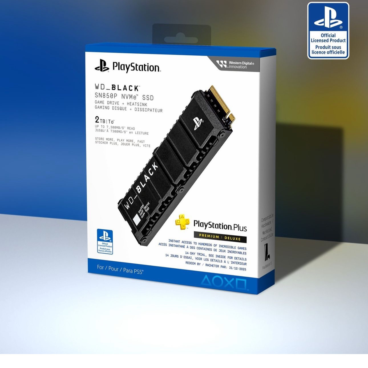 Officially licensed for the PlayStation 5 console, the WD_BLACK SN850P NVMe SSD allows you to store more titles with worry-free installation. Instantly add up to 4TB of storage to hold more of your favorite games and explore the Game Catalog, Classics Catalog, and more with a 14-day PlayStation Plus Premium | Deluxe trial included inside the box. With an optimized heatsink built specifically for the PS5 M.2 slot, you won’t need to worry about compatibility. The WD_BLACK SN850P NVMe SSD for PS5 consoles is certified and tested for PlayStation 5 consoles so you can store more, play more, fast.